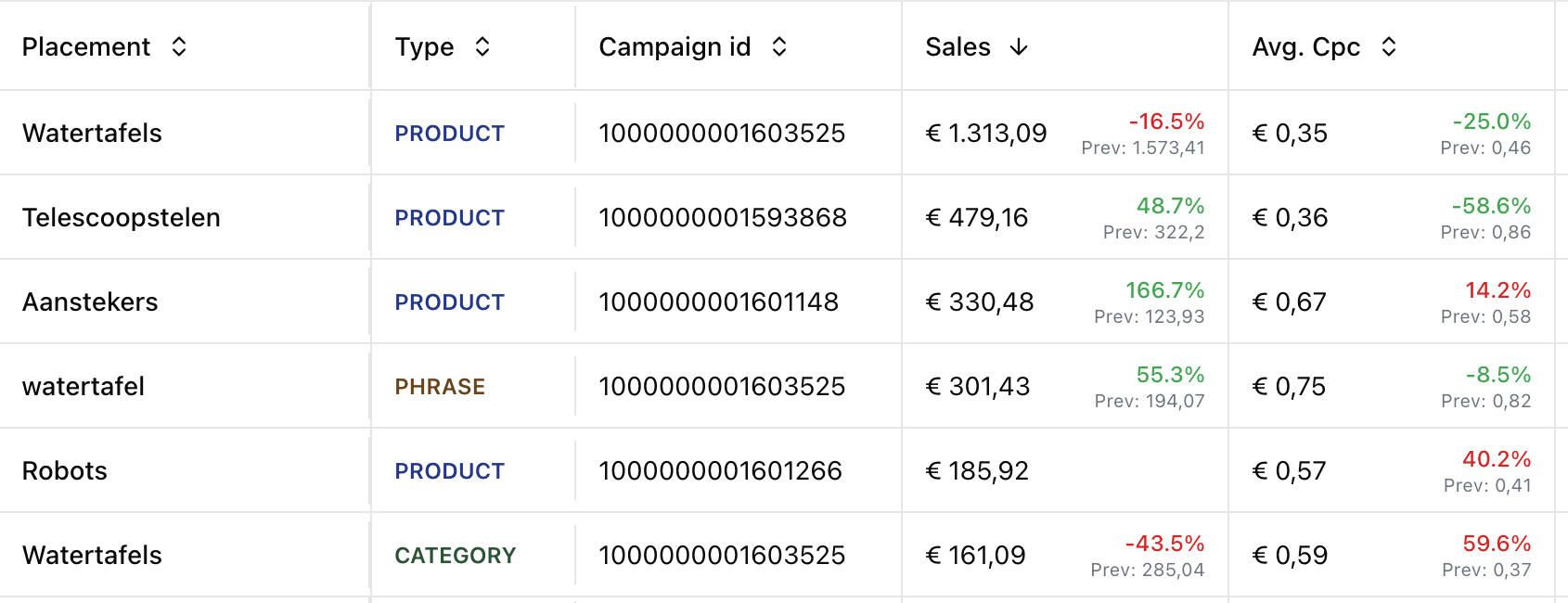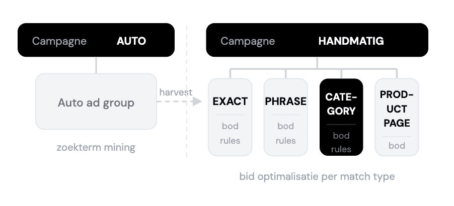 Winnende plaatsingen. Automatisch toegevoegd aan handmatige campagnes als EXACT match.